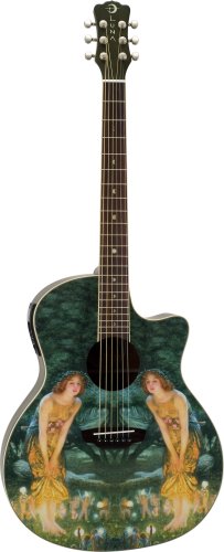 Graced front and back by the popular artwork of Victorian painter John Waterhouse, Luna's Mermaid guitar features a small auditorium cutaway body with select spruce top and mahogany back and sides. The built-in piezo pickup with 3-band equalizer delivers sparkling sound that seems to shimmer like the magical waters of the mermaid's home. Waterhouse's arresting artwork and Luna's exceptional styling combine to offer a truly unique instrument.